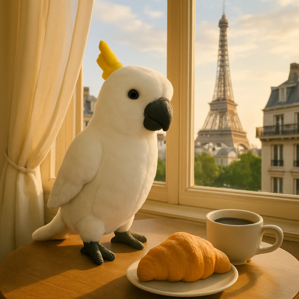 Hector is a white Cockatoo and is a very soft, cuddly realistic Sulfur-crested Cockatoo Australian souvenir plush toy.